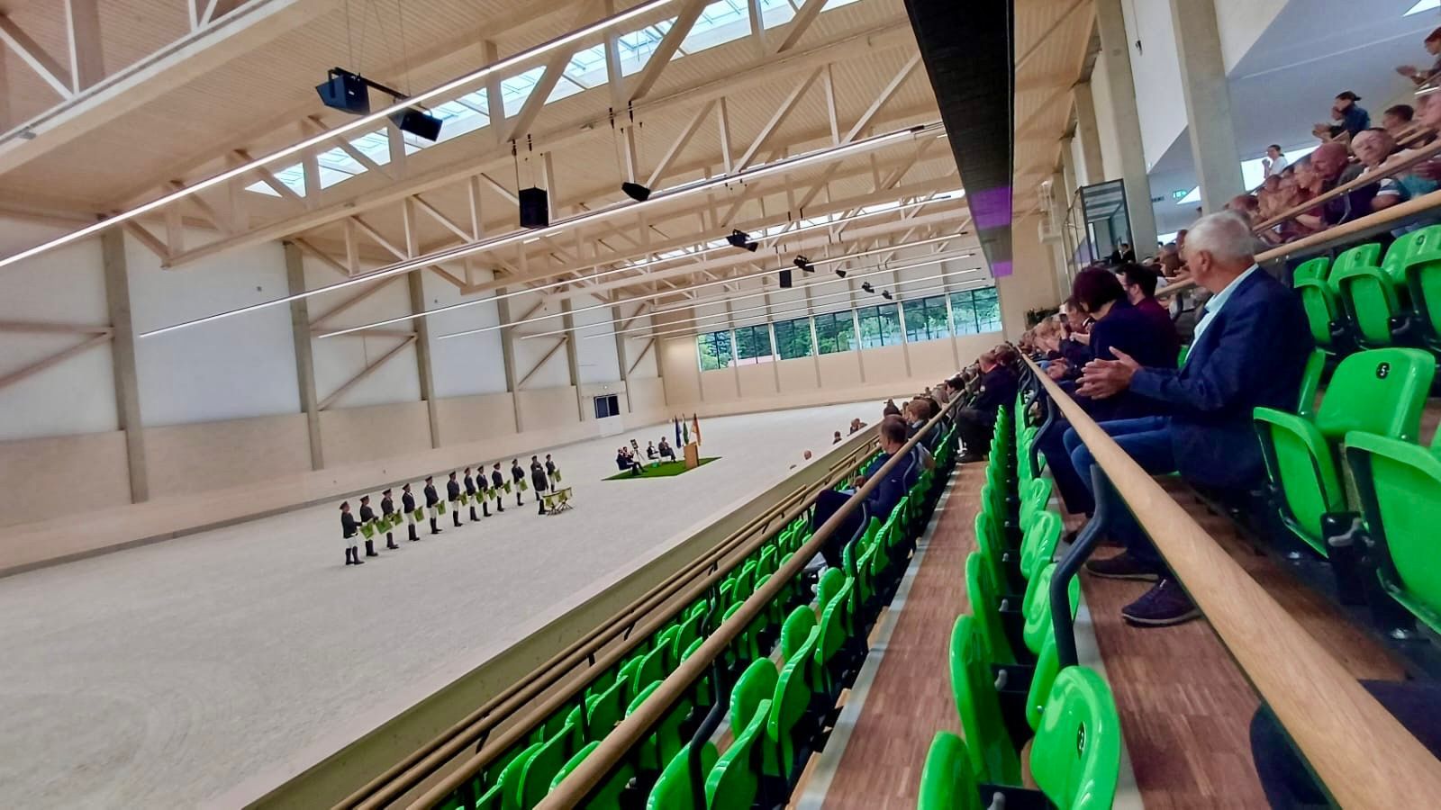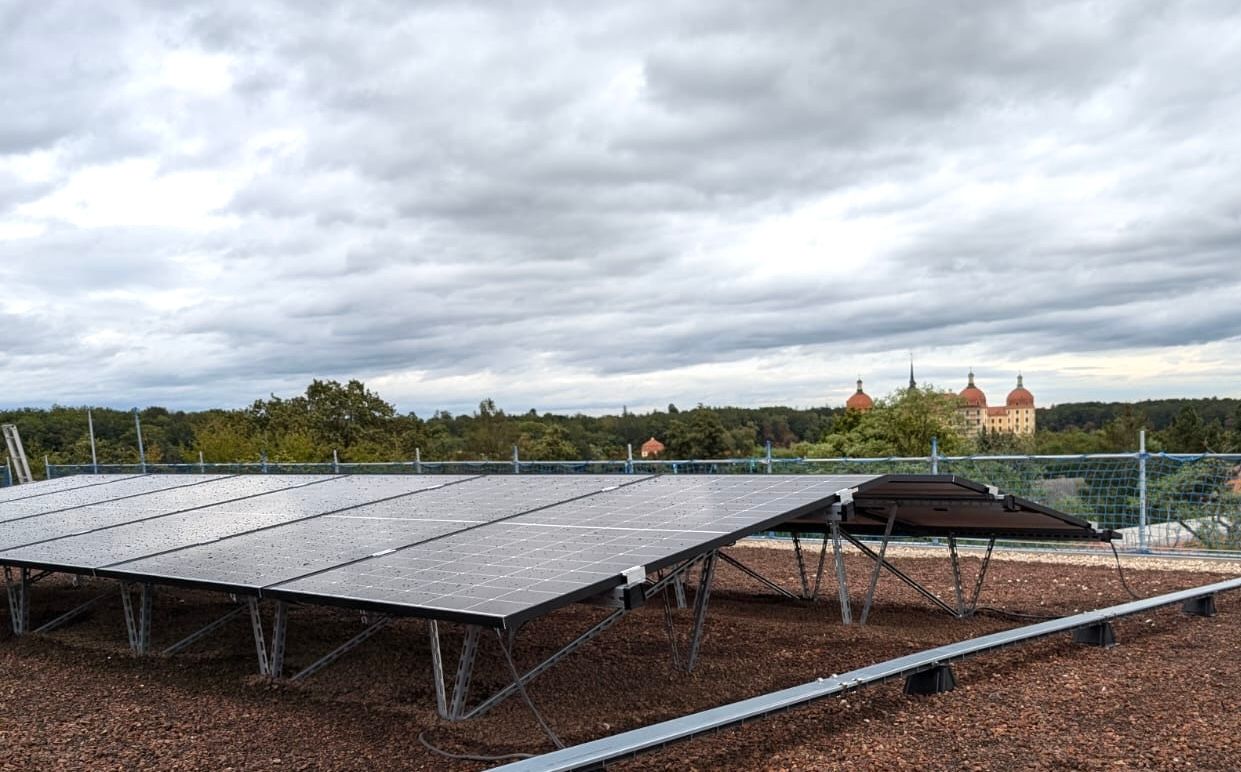 Am Dienstag den 5. August 2025 wurde die neue Reithalle am Landesgestüt Moritzburg eingeweiht. Die neuen Möglichkeiten der großen Halle mit angenehmer Akustik und üppigen Besucherrängen werden energetisch durch eine leistungsstarke PV-Anlage unterstützt. Elektrotechnik Thomas Wittig e. K. hat dafür 216 Solarmodule, welche eine Gesamtleistung von 95 kWp erreichen auf dem Dach der neuen Reithalle installiert. Der Akku der Anlage umfasst 56 kwh.
